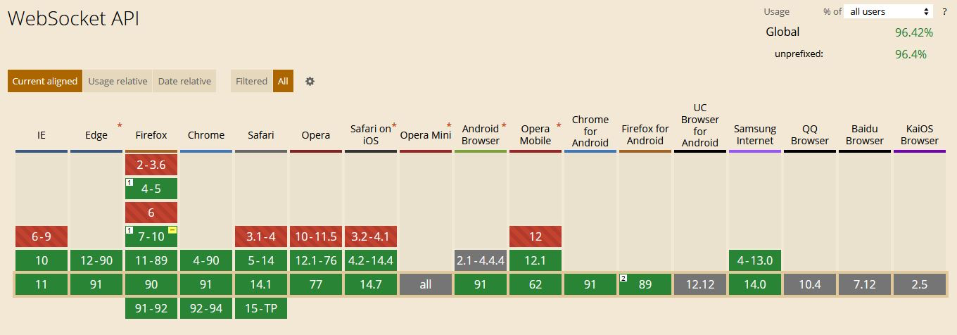 https://caniuse.com/?search=websocket 링크에서 WebSocket API 사용 가능한 브라우저를 확인할 수 있습니다.