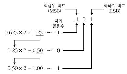 0.625는 이진수로 표현하면0.101이 된다.