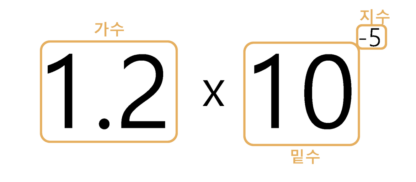 1.2 * 10^-5값을 가진다.- 가수는 1.2 이다.