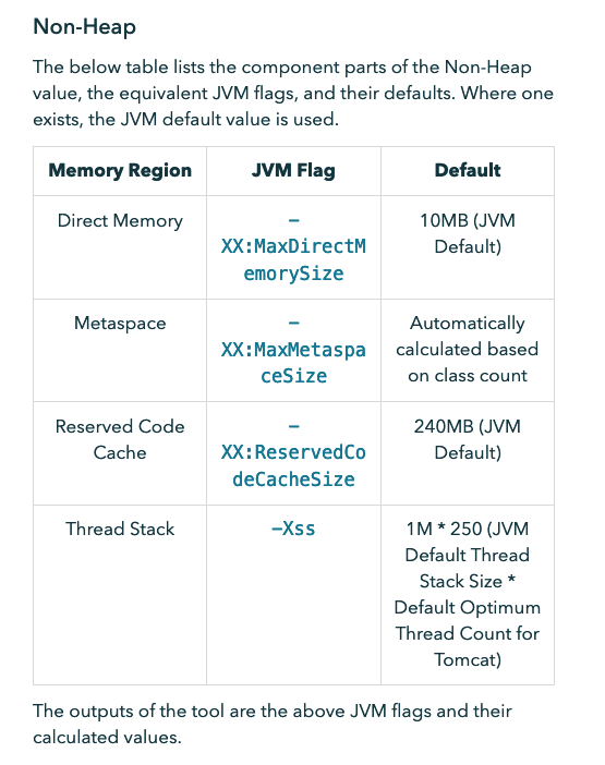 Non-Heap = (Direct Memory) + (Metaspace) + (Reserved Code Cache) + (Thread Stack * Thread Count)