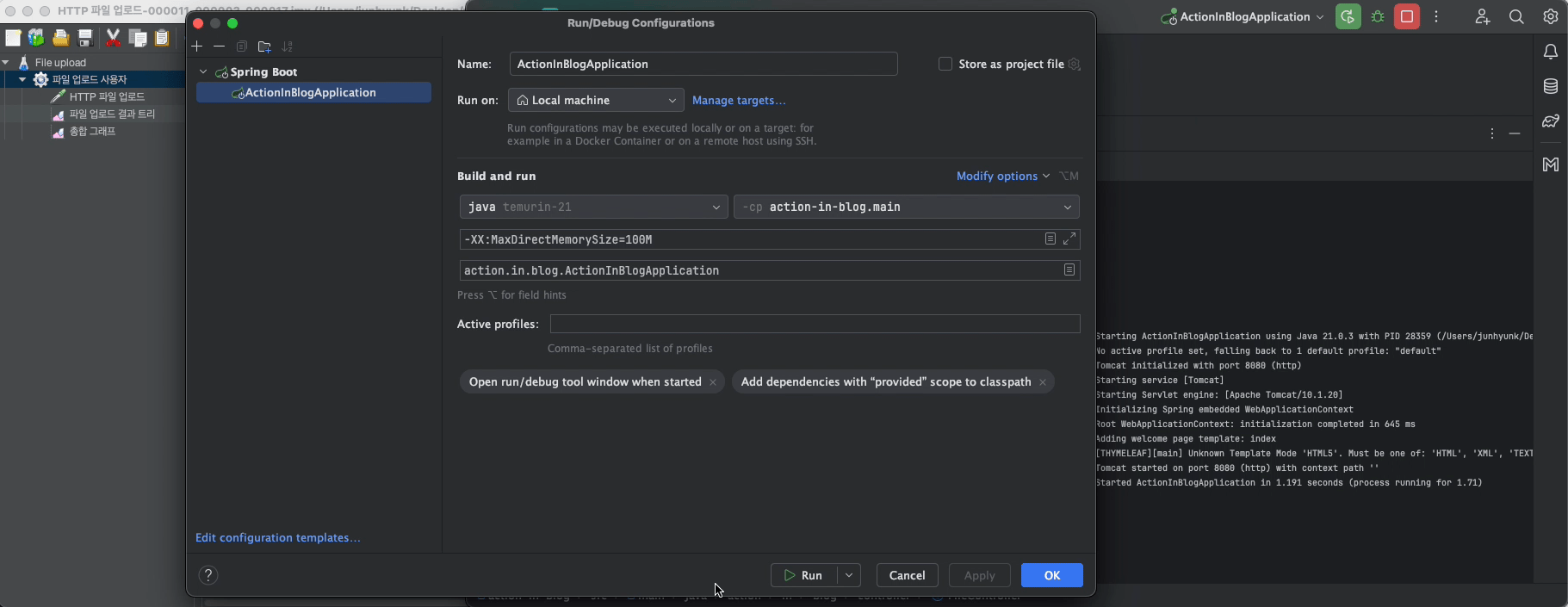 2024-04-30T06:12:14.776Z INFO 1 --- [ main] action.in.blog.ActionInBlogApplication : Starting ActionInBlogApplication v0.0.1-SNAPSHOT using Java 21.0.2 with PID 1 (/workspace/action-in-blog-0.0.1-SNAPSHOT.jar started by cnb in /workspace)