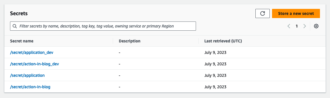 dev이므로/secret/action-in-blog_dev이 사용된다.