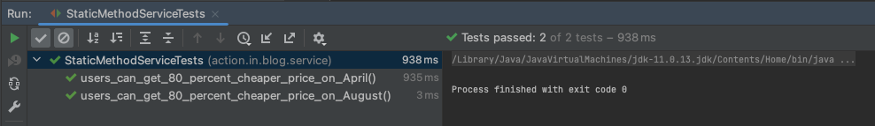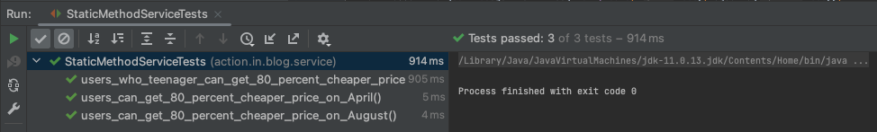 getEventPrice메서드를 통해 획득합니다. LocalDate클래스의now정적 메서드가 각 테스트 별로 적당한 값을 반환하도록 스터빙합니다.- 각 테스트 별로 4월, 8월을 반환합니다.
