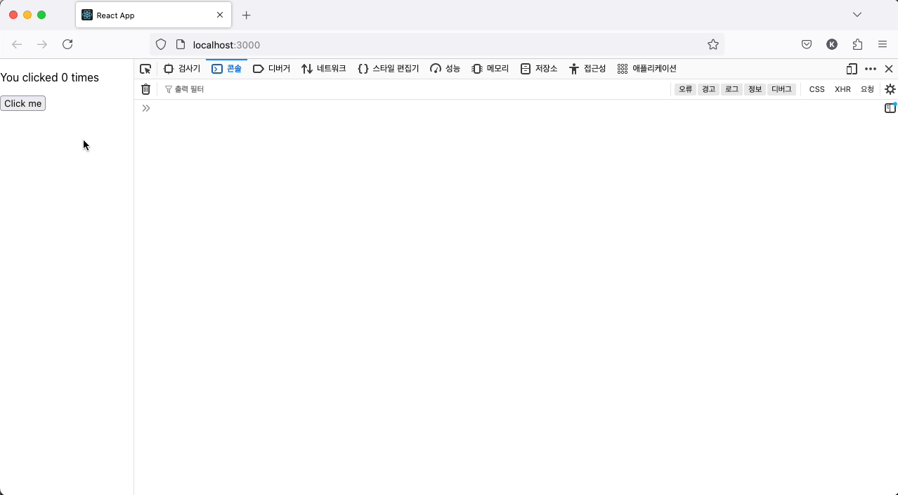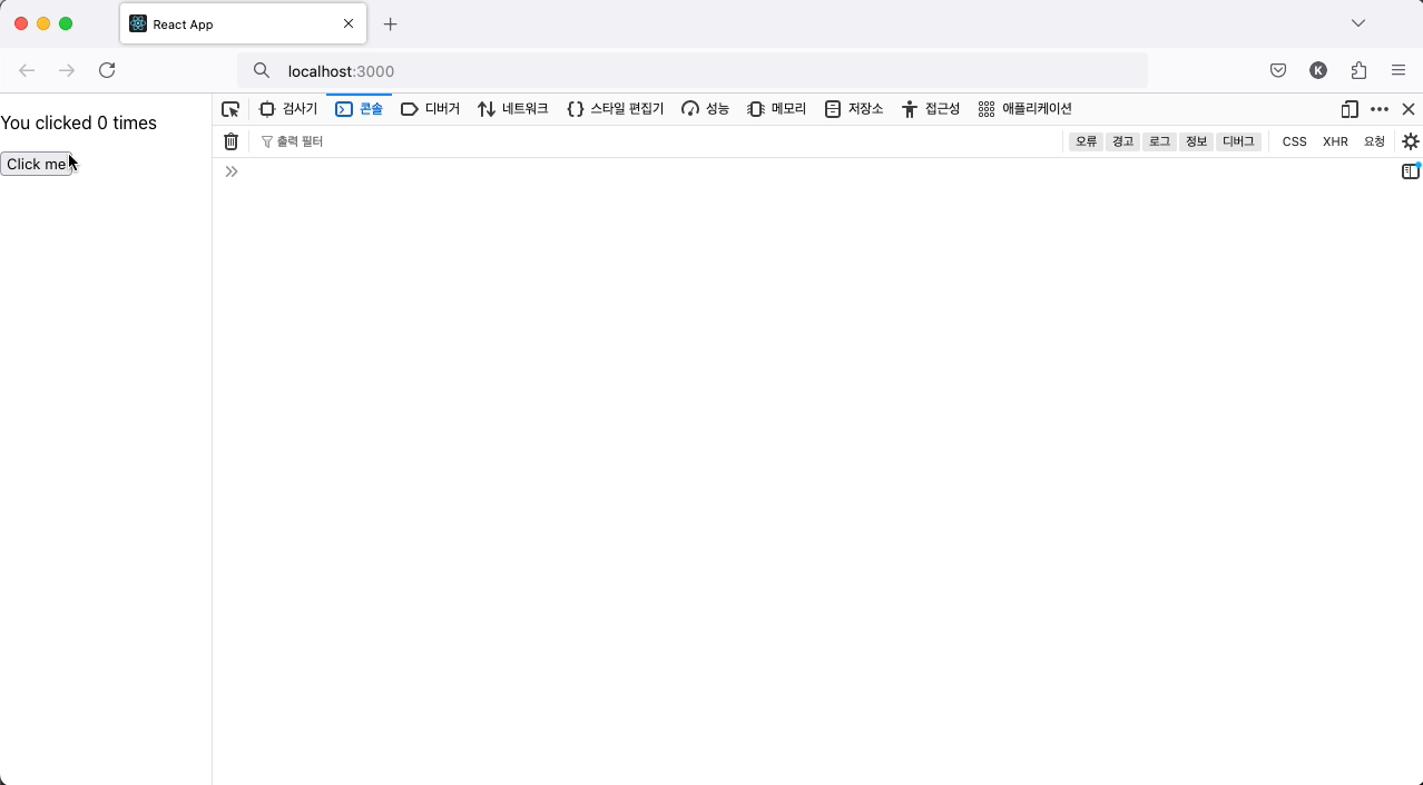 애플리케이션을 재실행 후 버튼을 여러 번 클릭해보면서 콘솔 로그를 살펴보자.