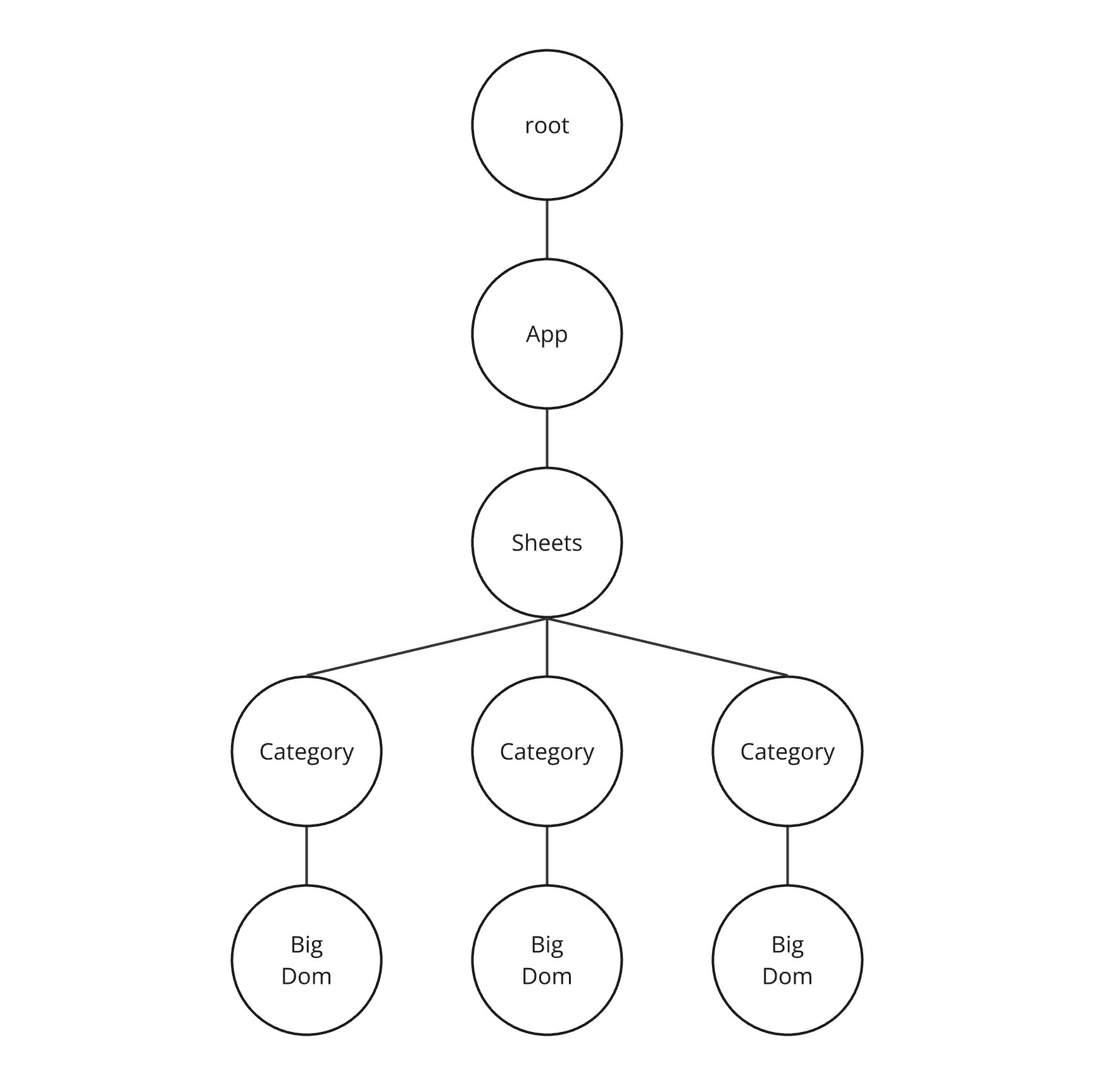 메모리 누수 여부를 확인하기 위해 메모리가 큰 BigDom 컴포넌트를 Category 컴포넌트 하단에 그린다. BigDom 컴포넌트는 다음과 같다.