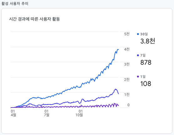 - 30일 누적 사용자 수가 3800명 수준이다.