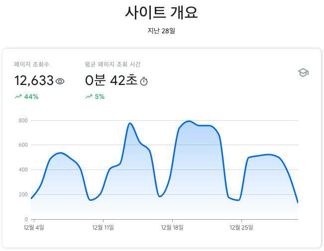 - 최근 작성했던 Log4j 보안 취약점과 해킹 재현 (feat. CVE-2021-44228) 포스트 덕분에 일주일 동안 일 800회 정도로 조회 수가 높았다.