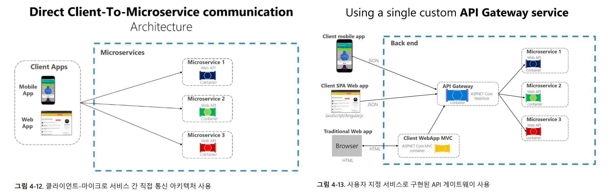 이를 해결하기 위한 컴포넌트가 API 게이트웨이(gateway)이다. 클라이언트 애플리케이션 입장에선 API 서버들을 하나로 묶어 단일화한 것처럼 보이기 때문에 게이트웨이 하나의 호스트를 통해 여러 API 서비스에 접근할 수 있다.