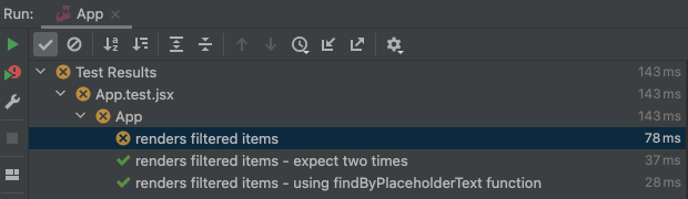 - 최초 에러가 발생한 테스트와 새로 만든 두 개의 테스트의 실행 결과입니다.