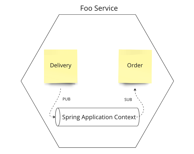 - 동일 서비스이므로 애플리케이션 컨텍스트를 통해 이벤트 처리를 수행합니다.