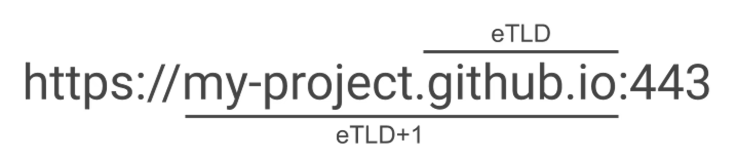 루트 도메인만으로 동일 사이트를 구분하기 힘든 경우가 있다. 예를 들어 깃허브(github)는 .github.io 도메인으로 사용자들의 개인 사이트를 호스팅 해주기 때문에 .io 루트 도메인만으로 동일 사이트 여부를 판단하기 어렵다. 이를 해결하기 위해 공공 접미사(public suffix)를 만들어 관리한다.