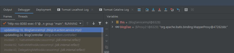 - BlogController 생성자 주입: blog.in.action.service.impl.BlogServiceImpl@68fbc8b8