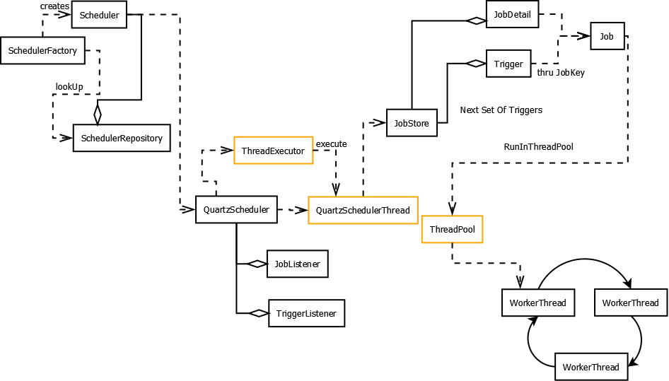 Quatz 구조도와 함께 관련된 인터페이스 클래스들을 정리하였습니다.