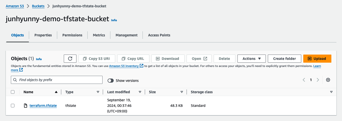 │ Path: junhyunny-demo-tfstate-bucket/terraform.tfstate