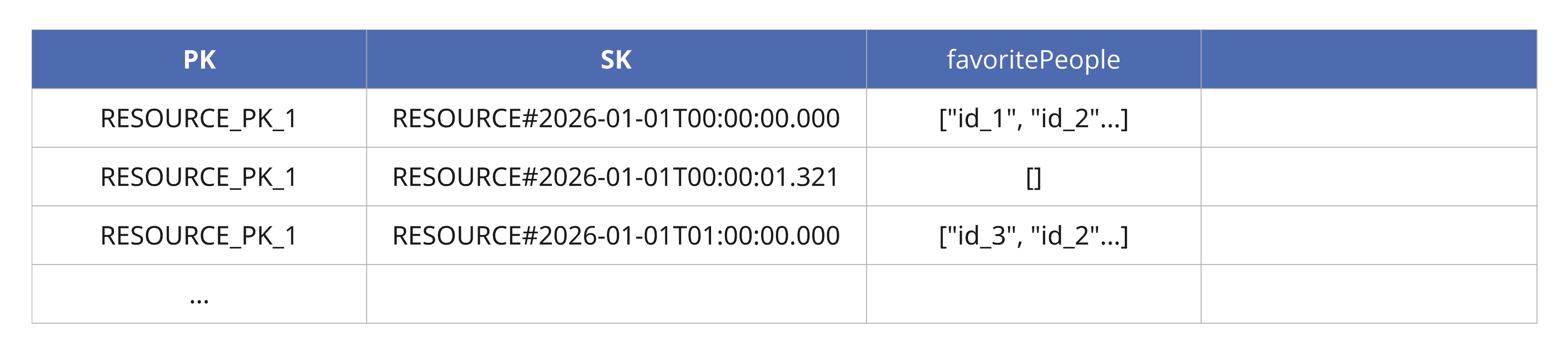 사용자 별로 특정 리소스에 ‘즐겨찾기’하는 기능을 개발 중이었다. RDB 였다면 즐겨찾기 테이블을 별도로 만들어 관리했겠지만, 이 팀은 DynamoDB를 사용하면서 단일 테이블 디자인(single table design)을 채택 중이었다. 테이블 디자인을 어떻게 가져갈지 페어(pair)와 상담해보고 가장 적합한 디자인은 결정했다. 현재 상황에서 코드의 복잡도를 높이지 않고, 기능을 구현할 수 있는 모델링이라 생각했다.