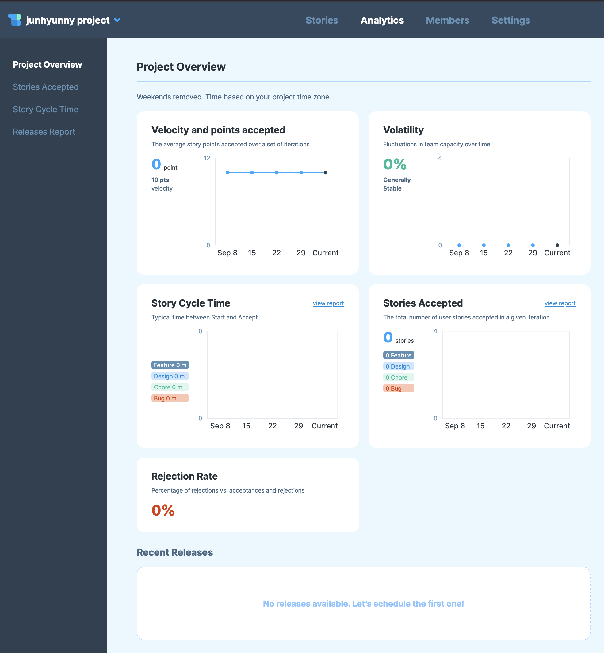 스토리 점수는 매 주 이터레이션이 끝나면 팀의 속도(velocity)를 측정할 때 사용된다. 속도 외에도 프로젝트가 얼마나 건강한지 여부를 확인할 수 있는 지표들을 분석해서 제공한다.