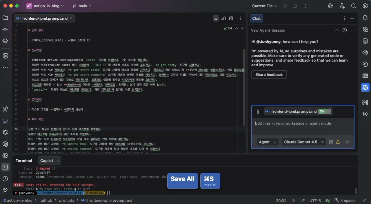 - 프론트엔드 테스트 - frontend-test.prompt.md 파일 사용